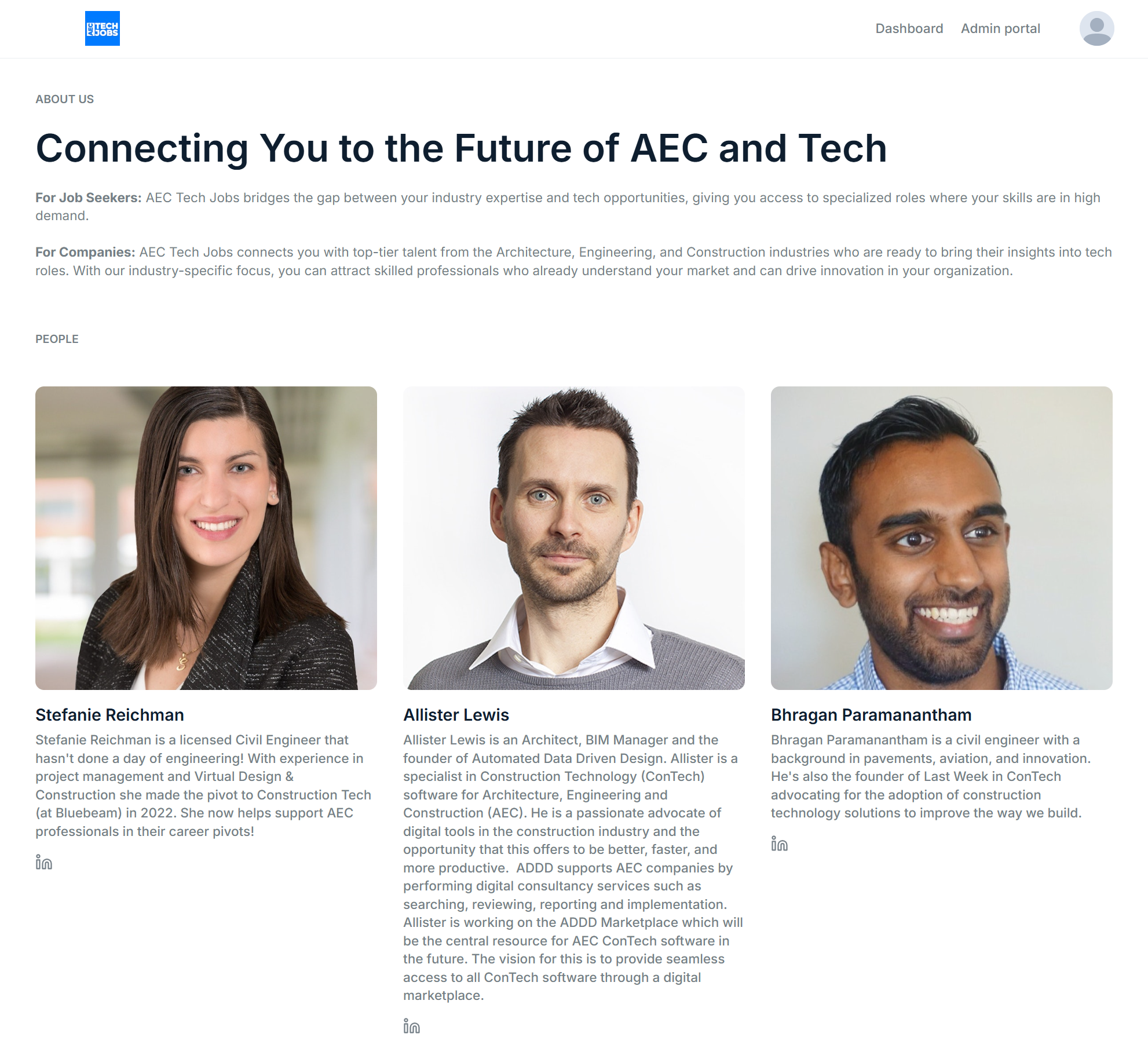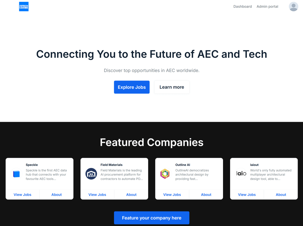AEC Tech Jobs is the only job board dedicated to helping AEC professionals transition into ConTech. We connect top talent with innovative companies at the intersection of AEC and technology.