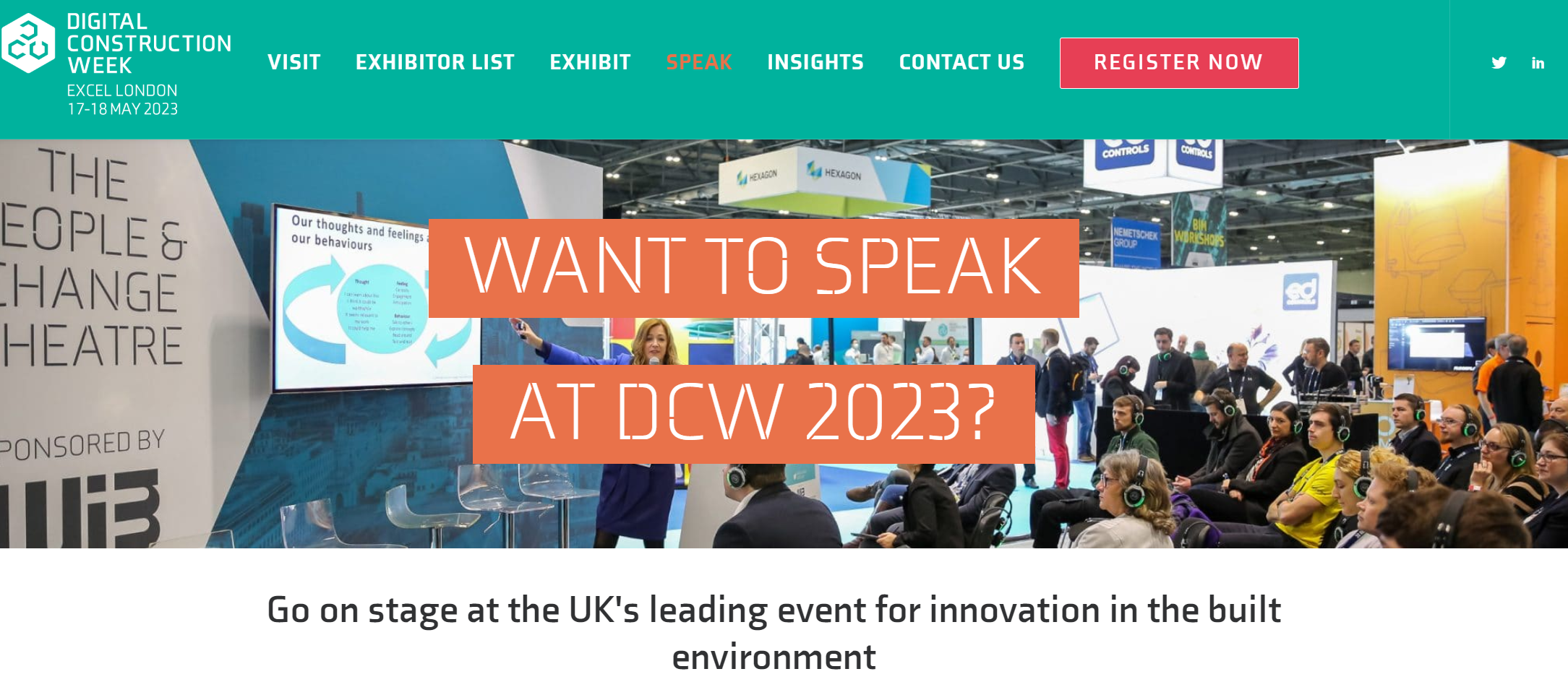 If you have insights to share relating to any aspect of innovation for the built environment, they would love you submit to be a speaker at Digital Construction Week at ExCeL London on 17-18 May 2023.
