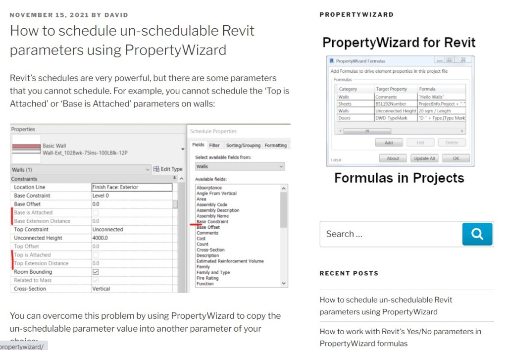 How to schedule un-schedulable Revit parameters using PropertyWizard