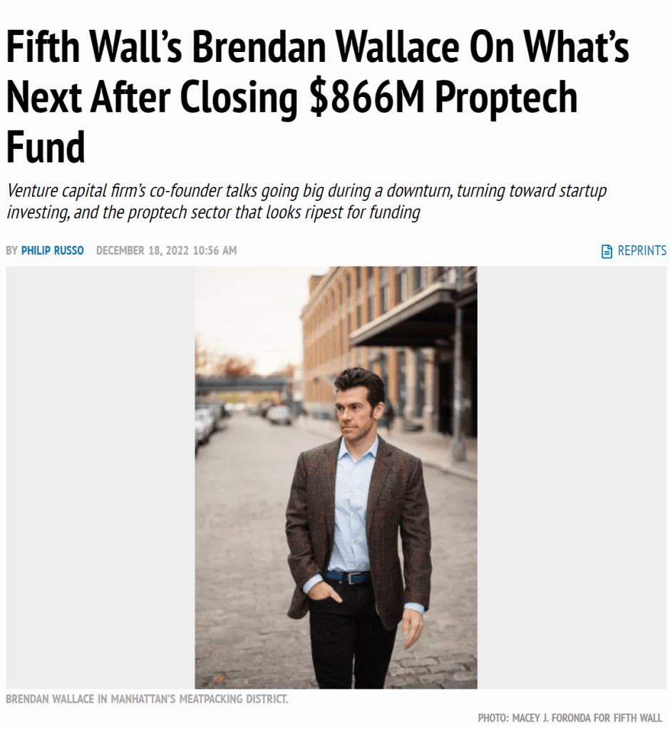 Fifth Wall’s Brendan Wallace On What’s Next After Closing $866M Proptech Fund. Brandon’s top tip is that in 2023 they will be investing in construction technology or ConTech a lot more.