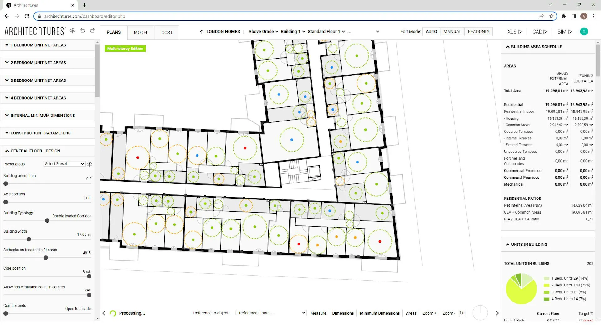 Used by architects and real estate developers to optimize the feasibility analysis process with regulatory confidence, rapid iterations, and accurate instant insights. Then, to download the standardized initial BIM model of the site to continue with their traditional workflow.
