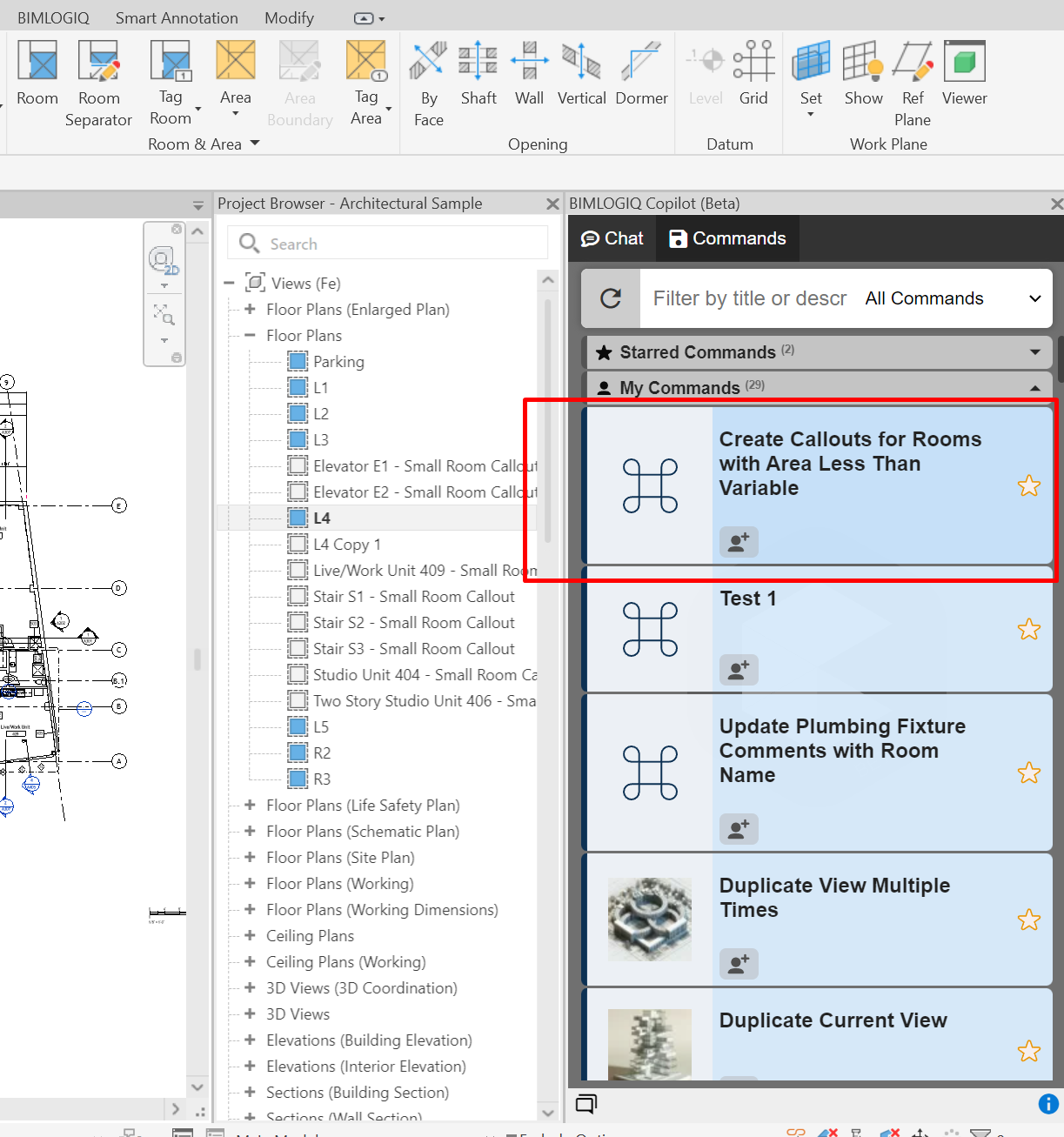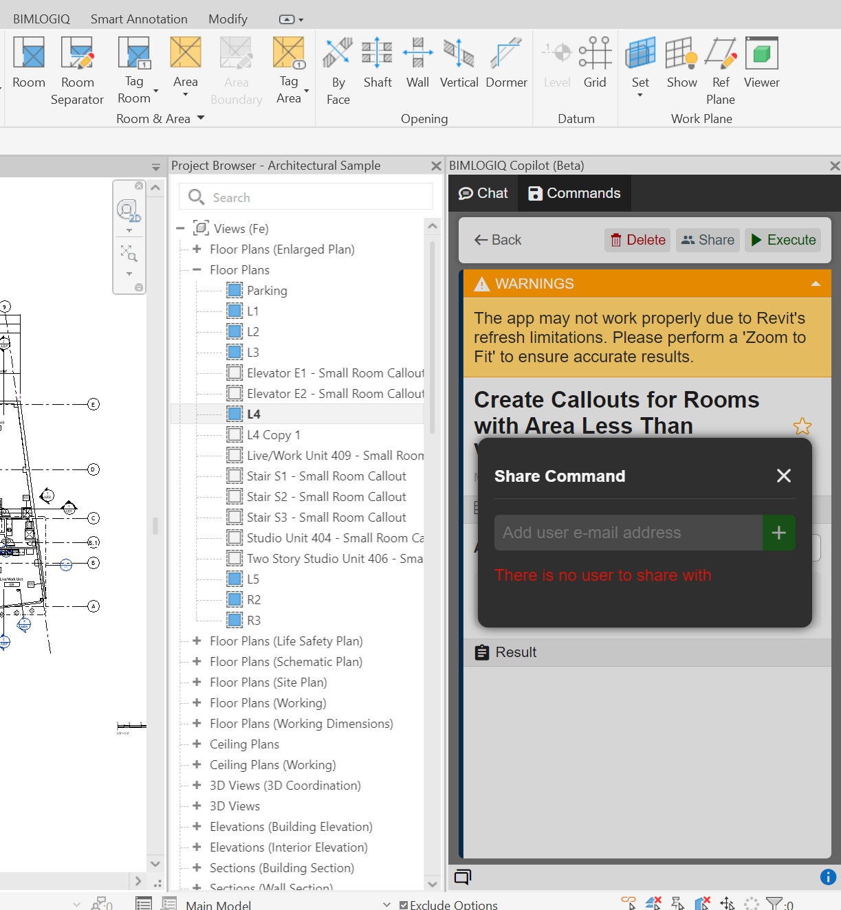 In addition to streamlining tasks, BIMLOGIQ Copilot offers the ability to save and share generated commands within the company, fostering collaboration and standardizing best practices across teams. With this innovative tool, users can focus on creativity and productivity while the AI handles the technical complexities.