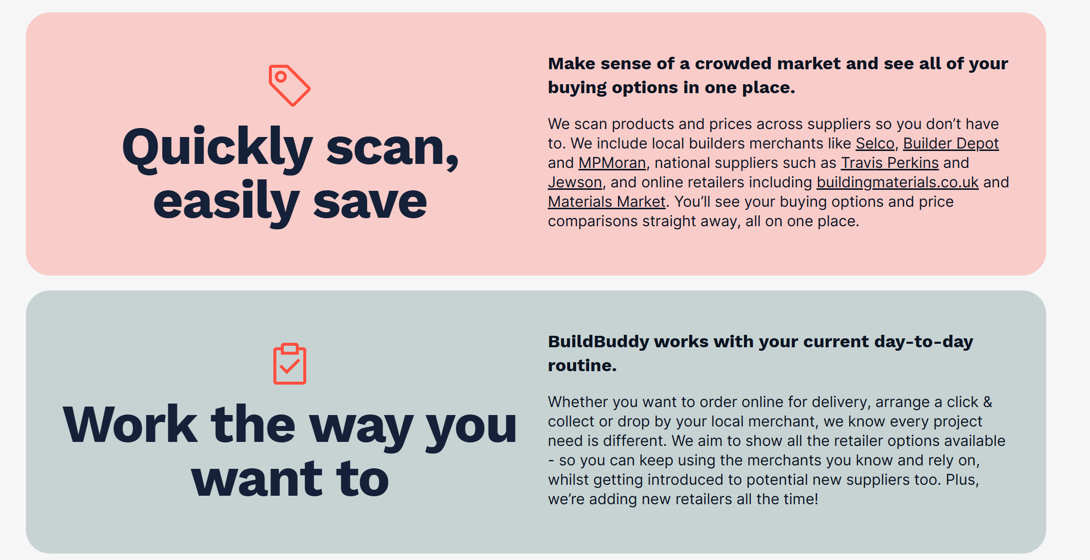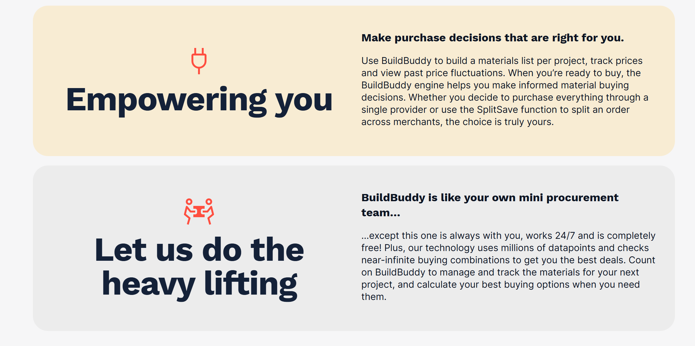 Let BuildBuddy’s data engine calculate the optimal buying combinations for you. Perhaps you’ll select a single merchant or use SplitSave to see greater savings.