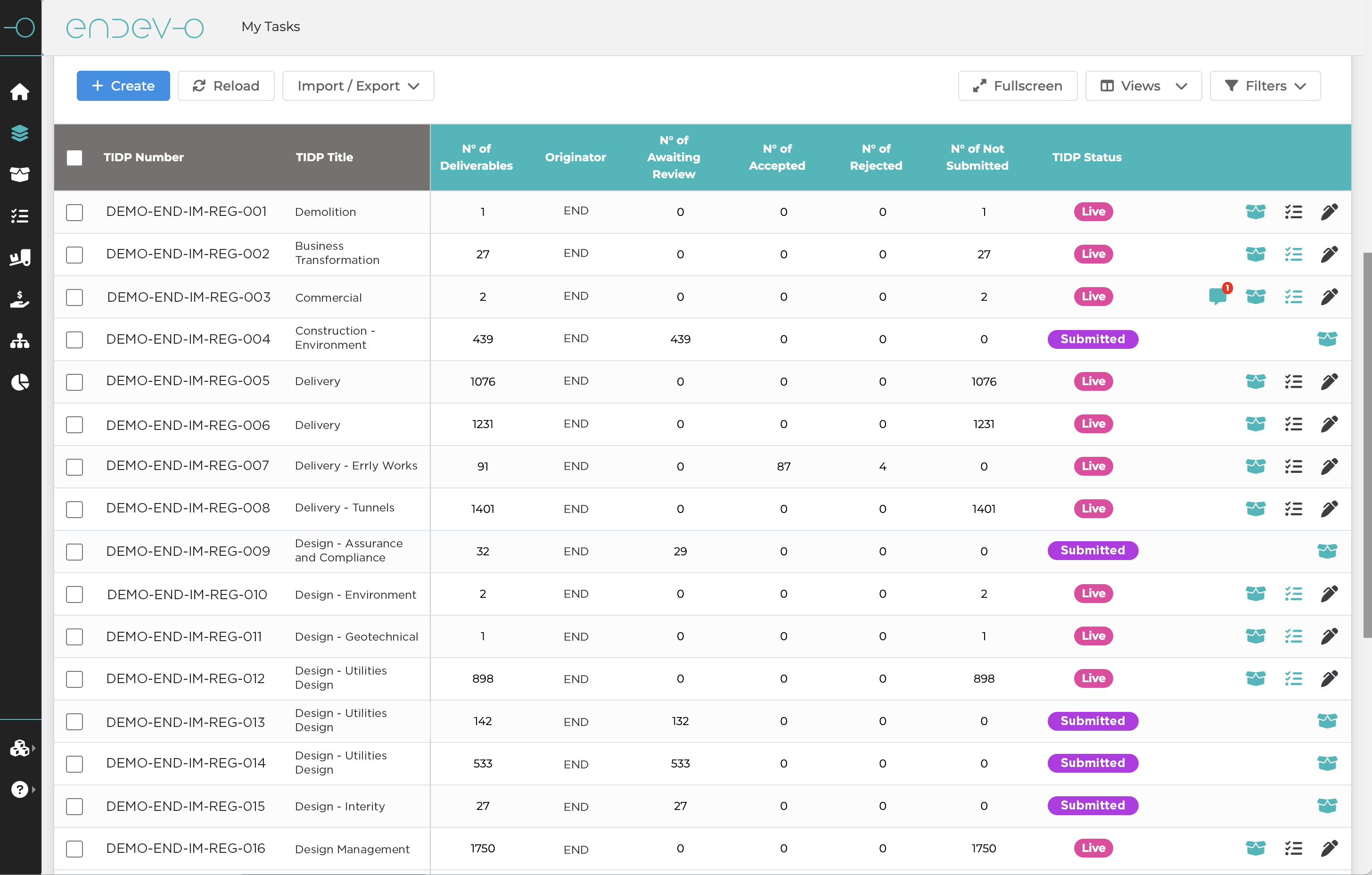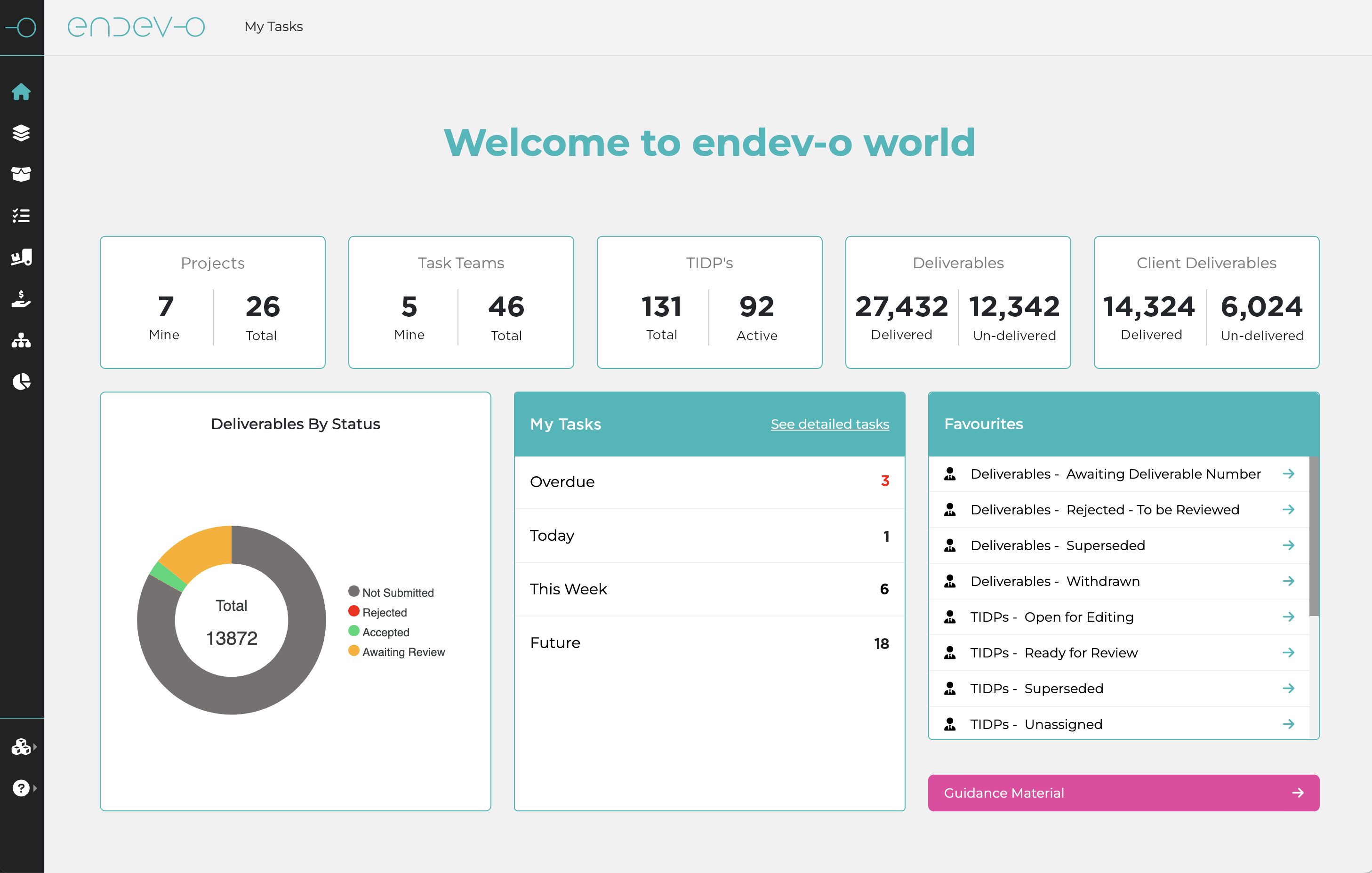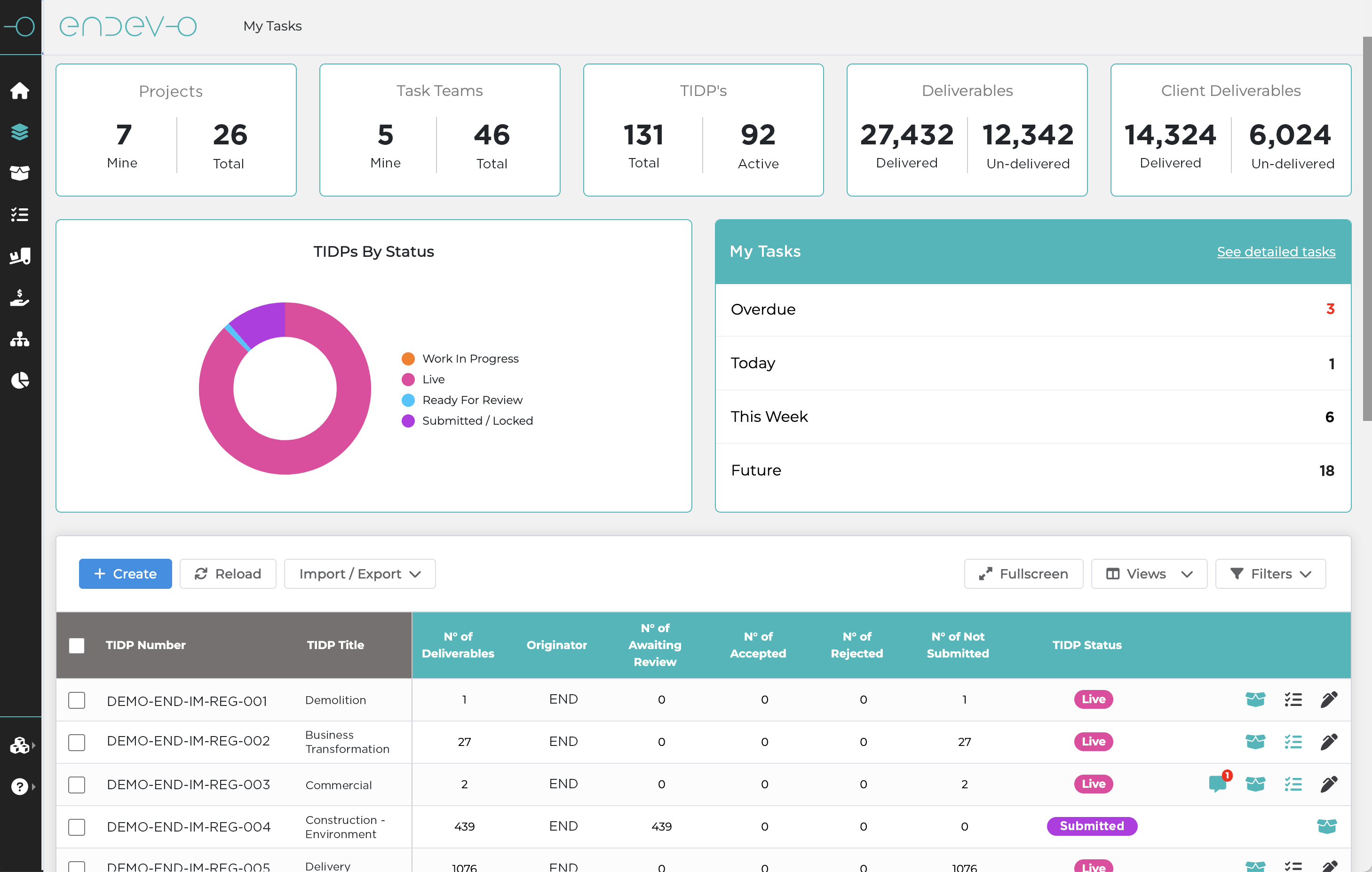As industry leaders in information management across the built environment, Amodal has witnessed both the benefits and challenges of spreadsheet-based project management. Drawing on this expertise, we developed endev-o, a purpose-built platform designed to streamline project data management. The first app in the suite, Project Deliverables, focuses on the management of TIDPs, MIDPs, and IDPs, ensuring seamless collaboration and compliance.