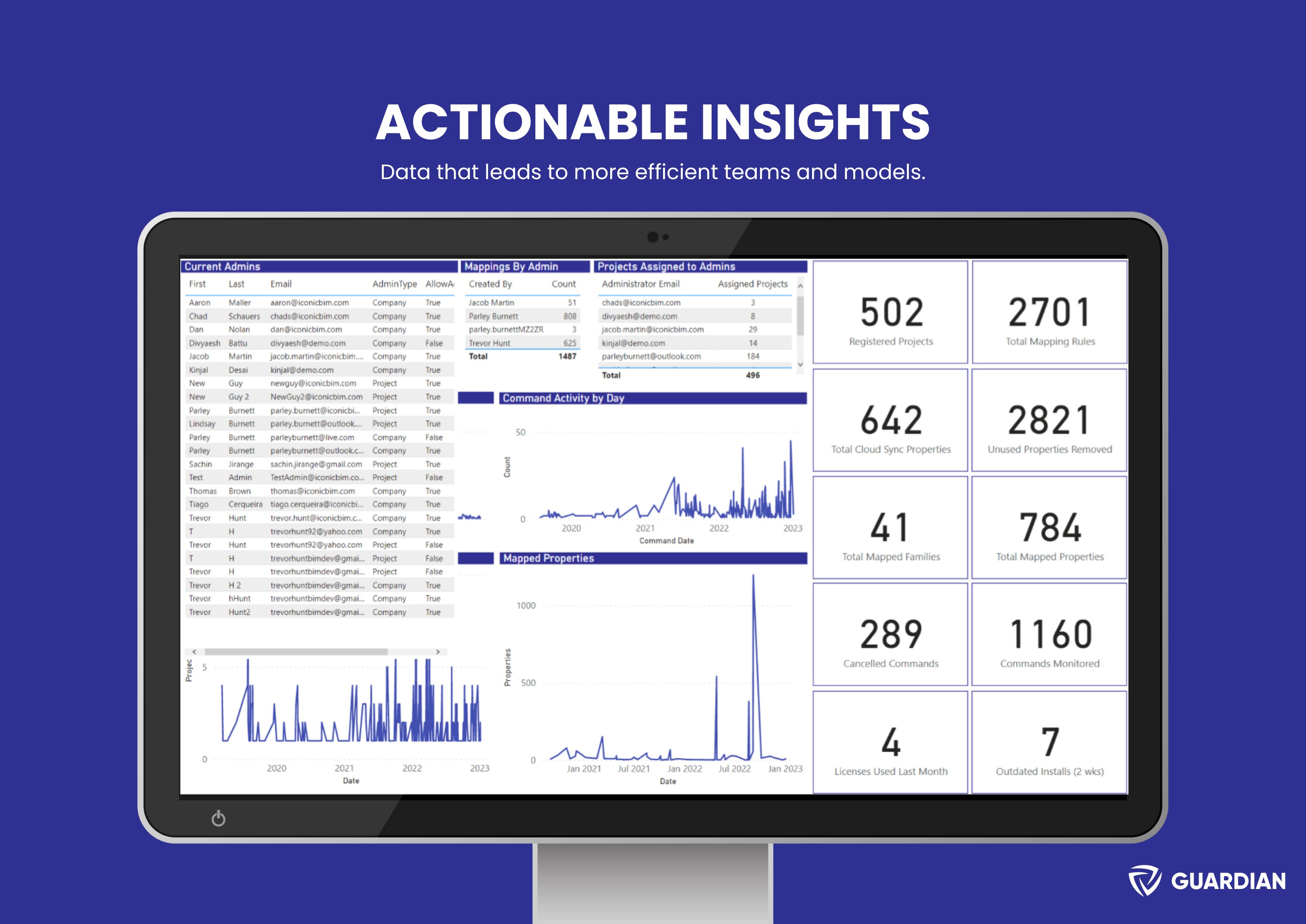Guardian takes a holistic approach to improving the user experience by providing the data and solutions you need to address issues quickly before they become a problem. Through actionable insights, you can customize the Guardian settings to reflect your firm’s standards and best practices with in-the-moment user education and project protections. Guardian ensures your teams can focus on what they do best: building, designing, and engineering.