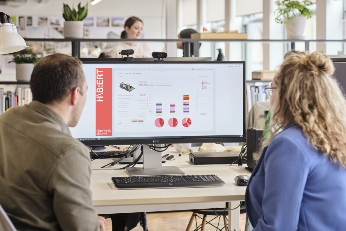 We worked in partnership with the UCL Institute for Environmental Design and Engineering (IEDE), through their Engineering Doctorate program, to create the award-winning Hawkins\Brown: Emission Reduction Tool. The tool was developed as part of research titled ‘Refurbish or Replace – the life cycle performance of existing buildings and their replacements’ by Dr Yair Schwartz, Research Associate at The Bartlett, UCL. H\B:ERT works by measuring the volume of all materials tagged in the Revit model. It then applies embodied carbon data to that material, broken down into life cycle stages (product, construction, use stage and end of life) in line with BS EN 15978:2011.