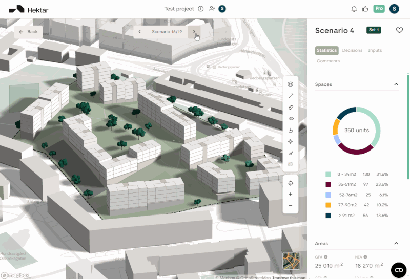To help you set the framework for truly great city planning, we developed Hektar – a tool for early-stage volume studies. Helping you deal with the inherent complexity of this critical design phase, generating proposals that synthesize the intelligence of code with the artistic touch of a human.
