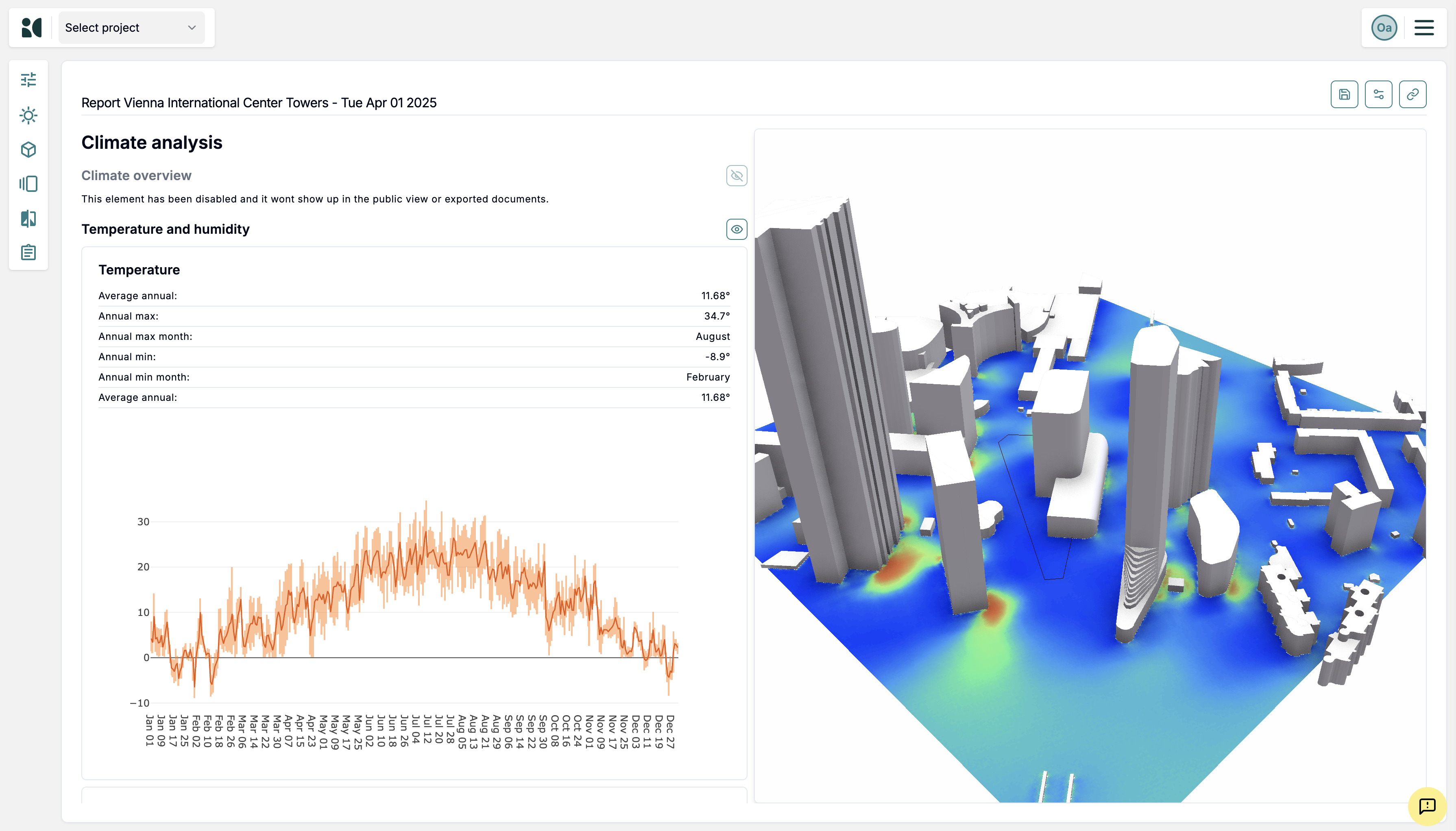 Our AI insights and automated AI reports generation turns climate simulations into actionable insights. Rather than just raw data, infrared.city provides context-aware performance indicators and visualizations that directly inform design decisions.