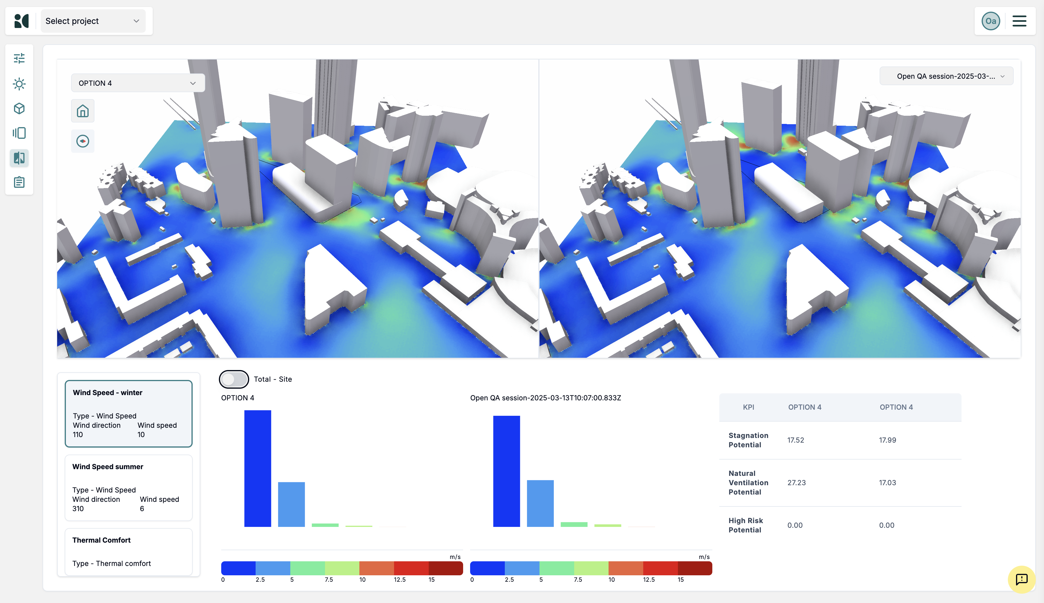With order of magnitude time saving capability, our platform enables architects and urban planners to rapidly test multiple design iterations in real-time, helping teams identify optimal solutions for wind comfort, thermal performance, and solar access from the earliest project phases – when design changes are least costly and most impactful.