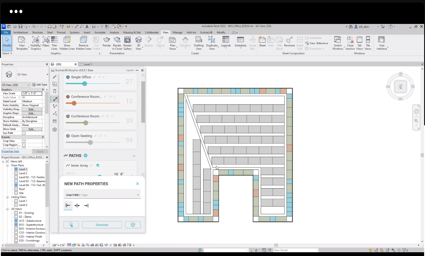 With seamless Revit® integration, Morphis® helps you generate designs in real-time using your Revit® Rooms and Families.