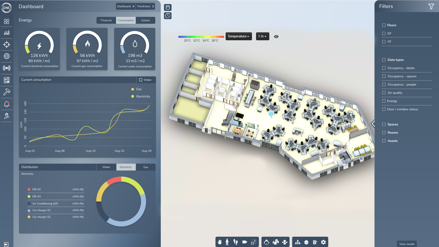 ONE’s bespoke solutions for a Digital Twin platform, combining Building Information Modelling (BIM) and the Internet of Things (IoT), is a gamechanger for facilities management. It can help you to achieve Net Zero, manage energy, operating costs and provide a host of other benefits.