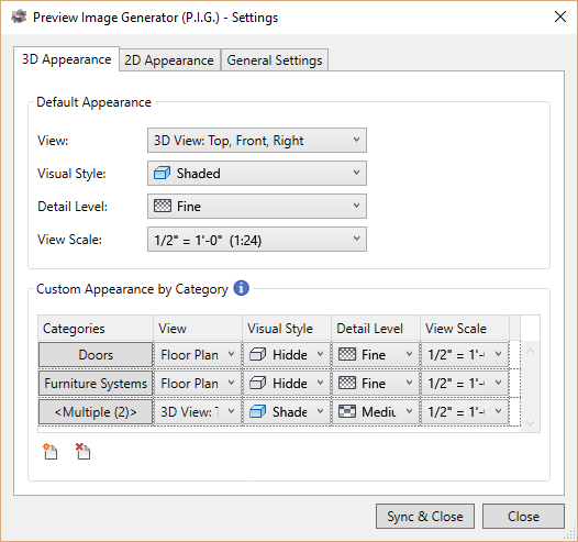 With one click, P.I.G. Batch will replace those ugly preview images with consistent & clear images for your entire library! It will even regenerate the preview image every time you save your families so you literally never have to worry again. Just install the app and let P.I.G. do its job!