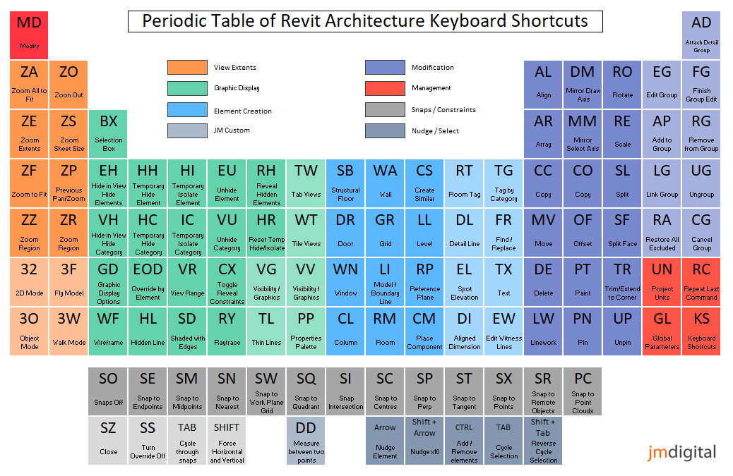 Keith Wilkinson has created this useful guide to Revit shortcuts using the periodic table as a template.